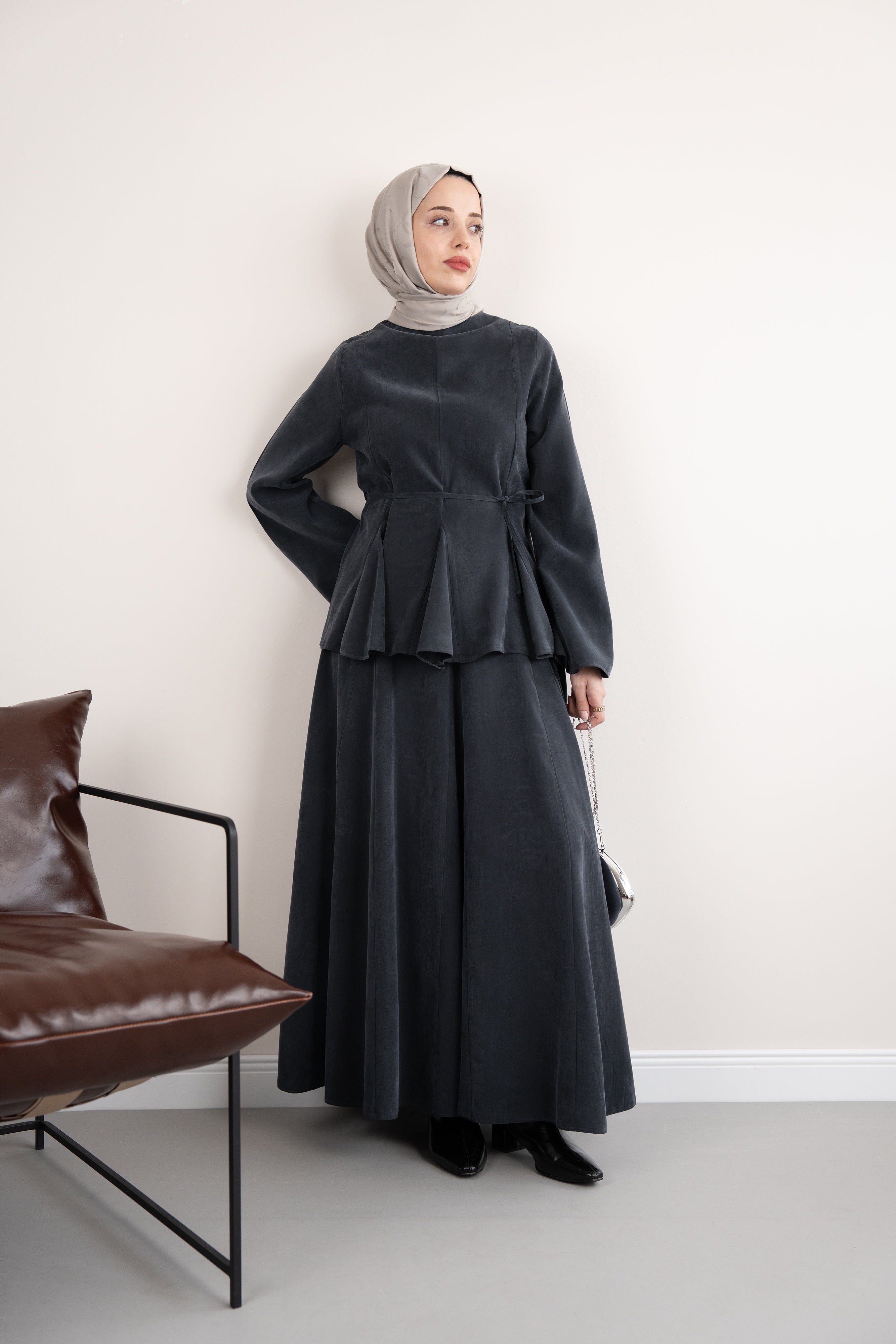 ipek stilKemer Detaylı Asimetrik Kaban Toprak