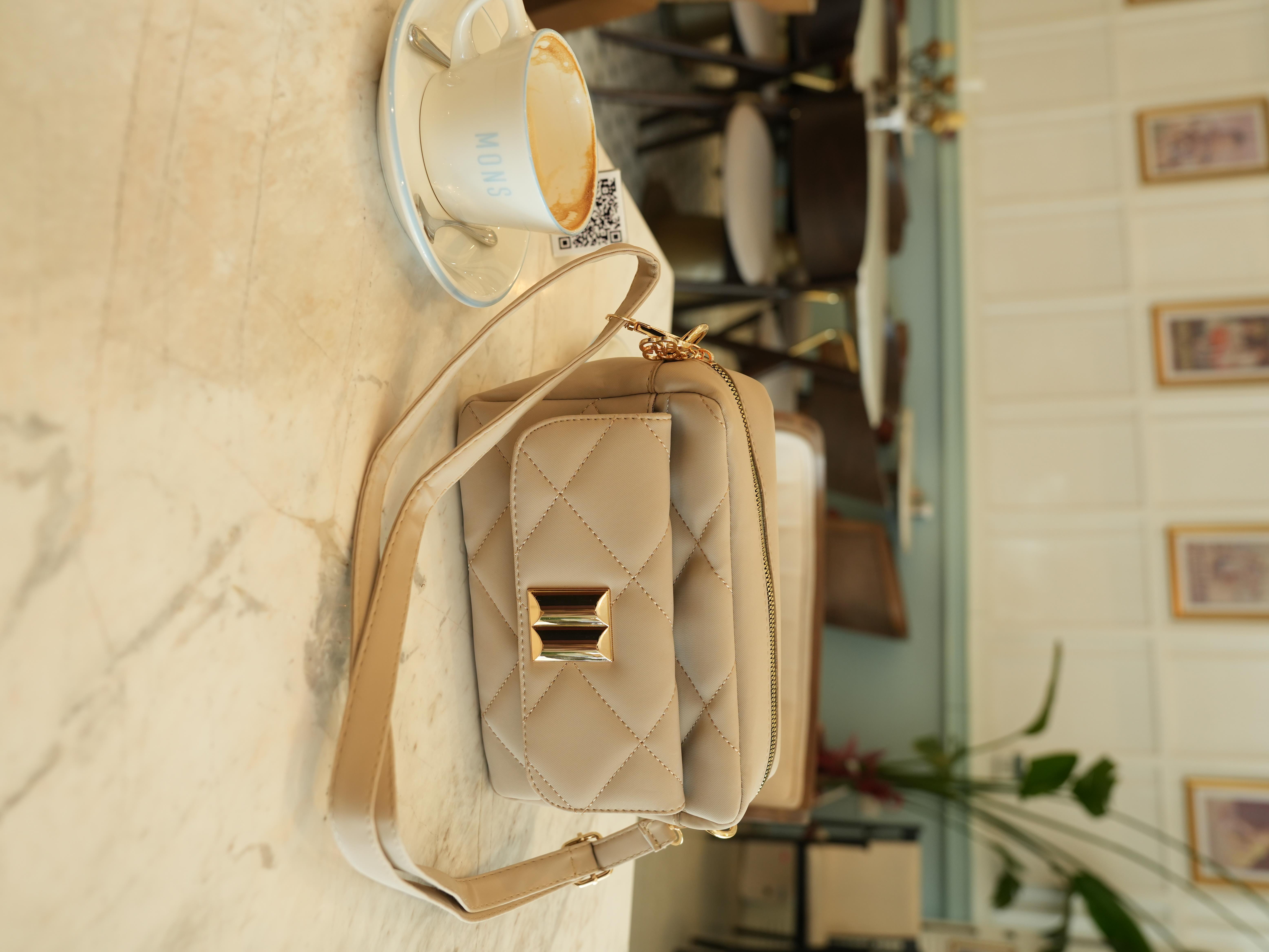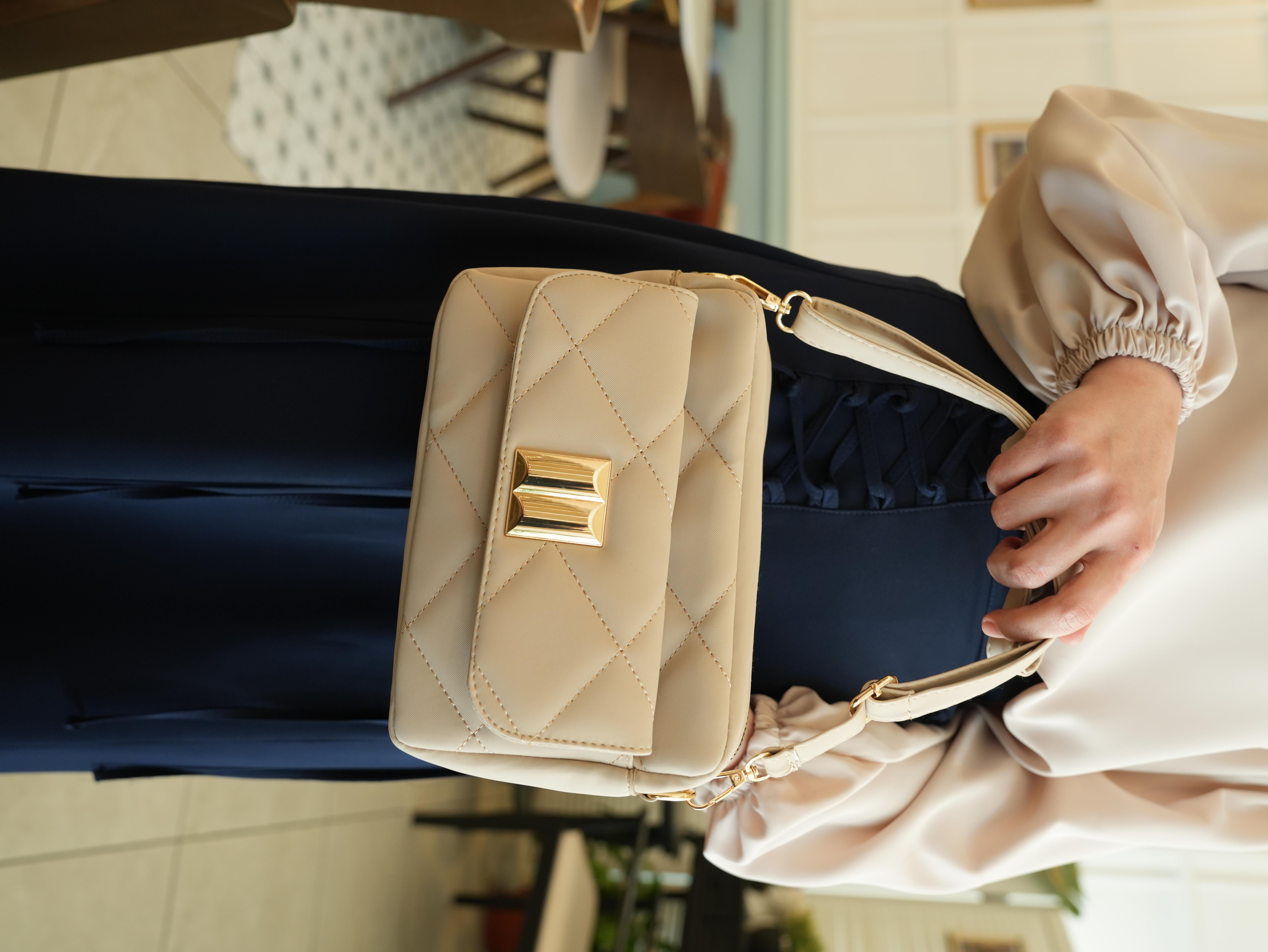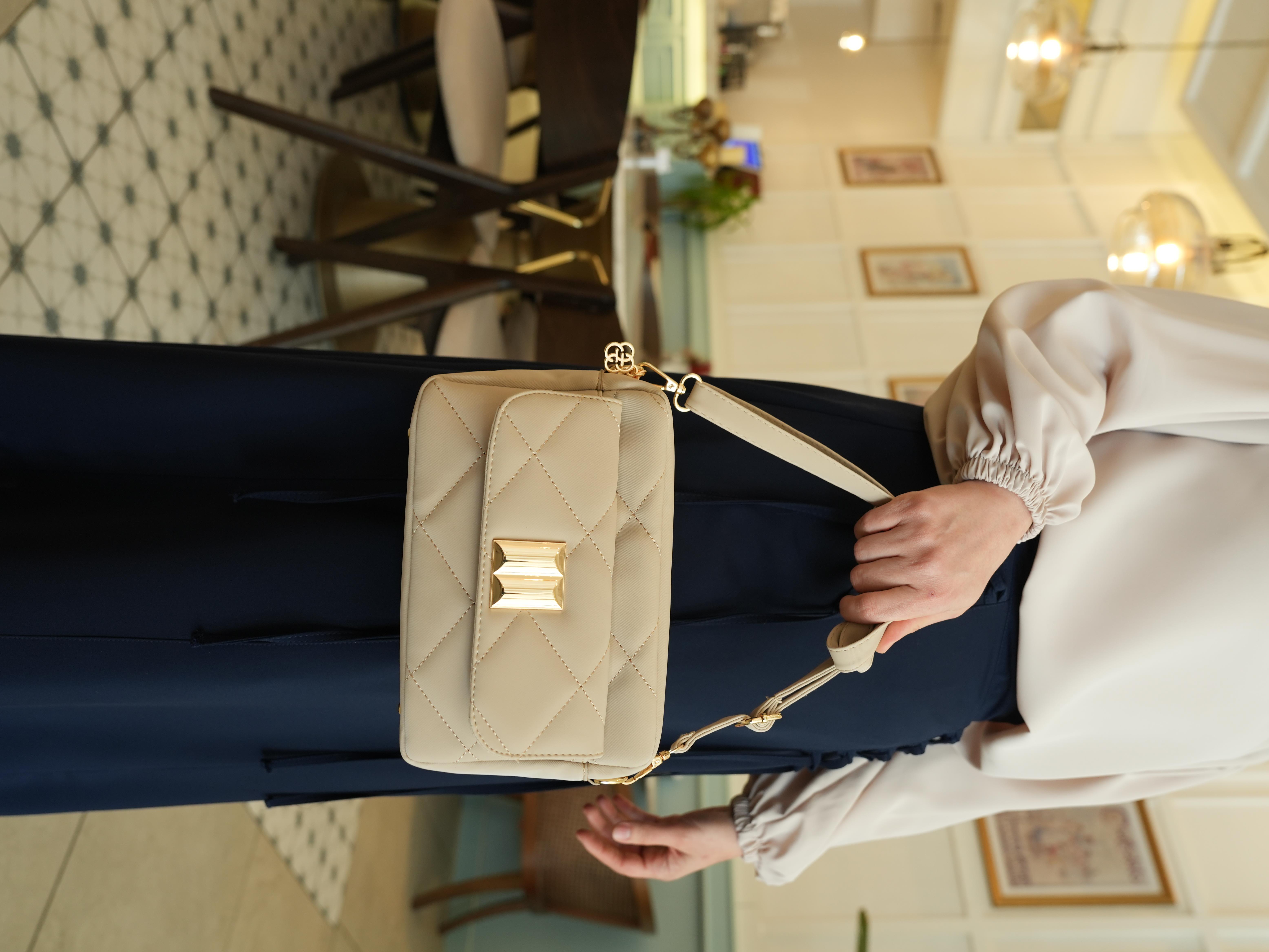 Kapitone Çapraz Çanta Krem