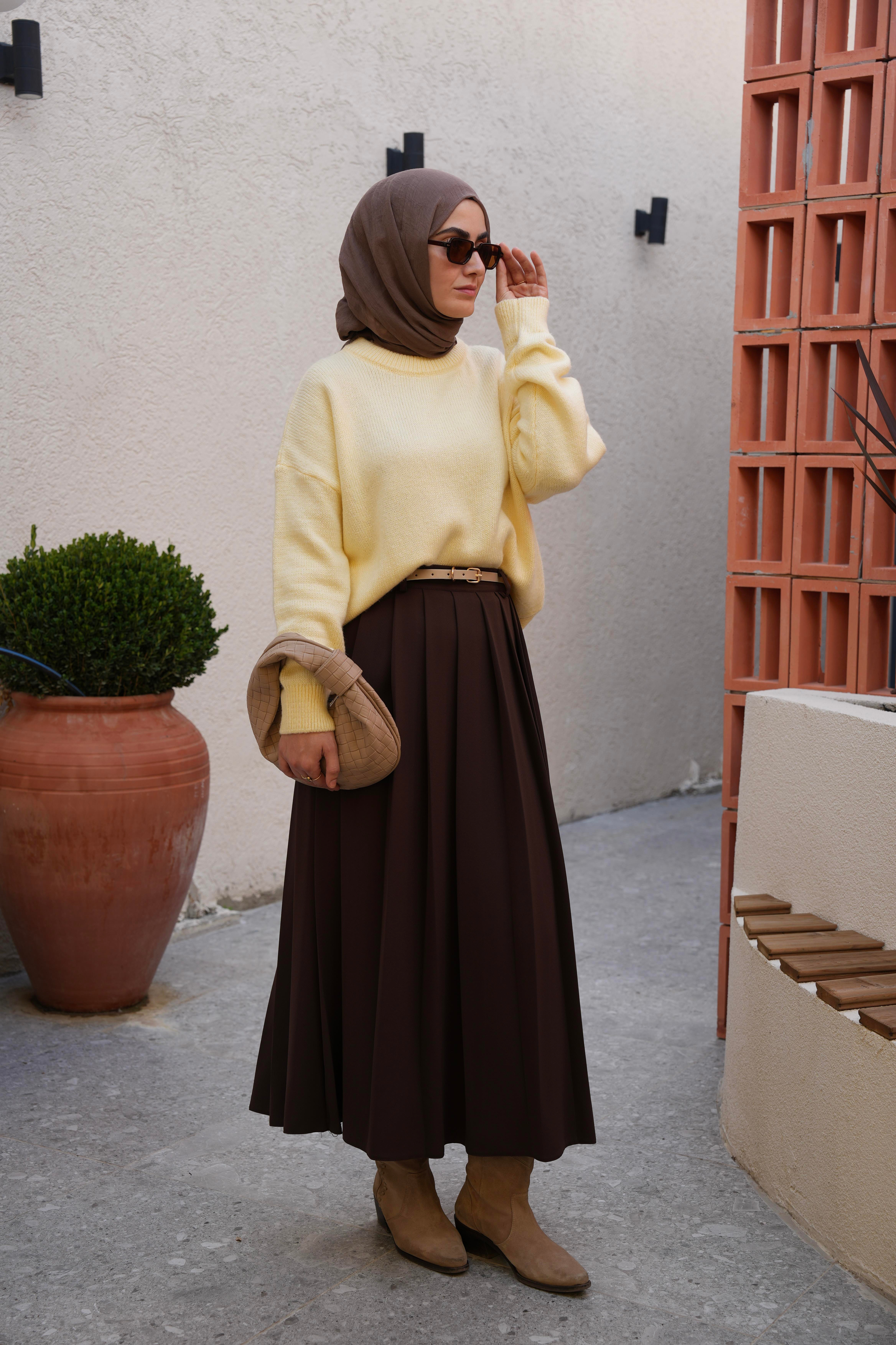 Pilikaşe Etek Kahverengi