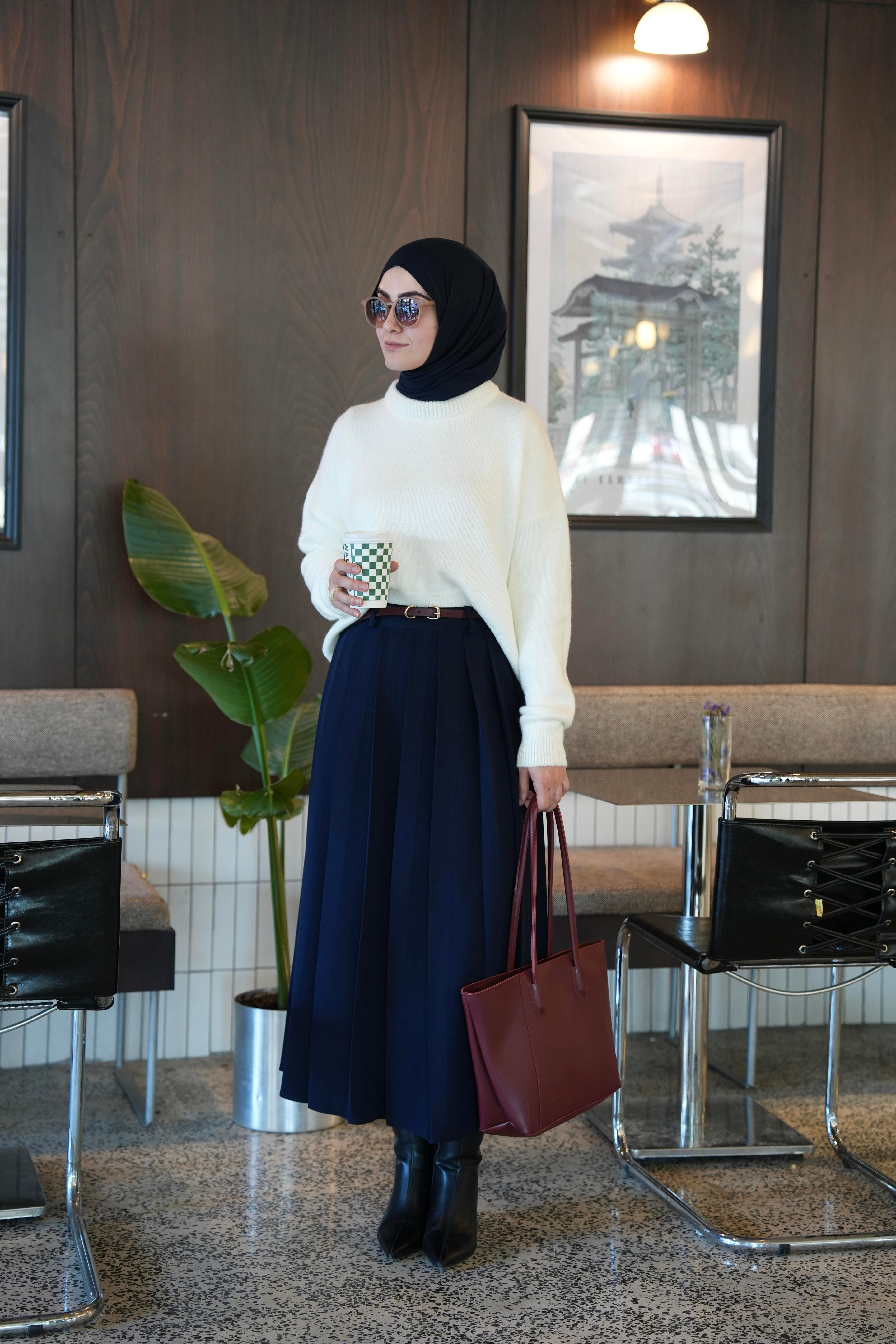 ✔️ Tesettür uyumlu yüksek bel ve dökümlü form
